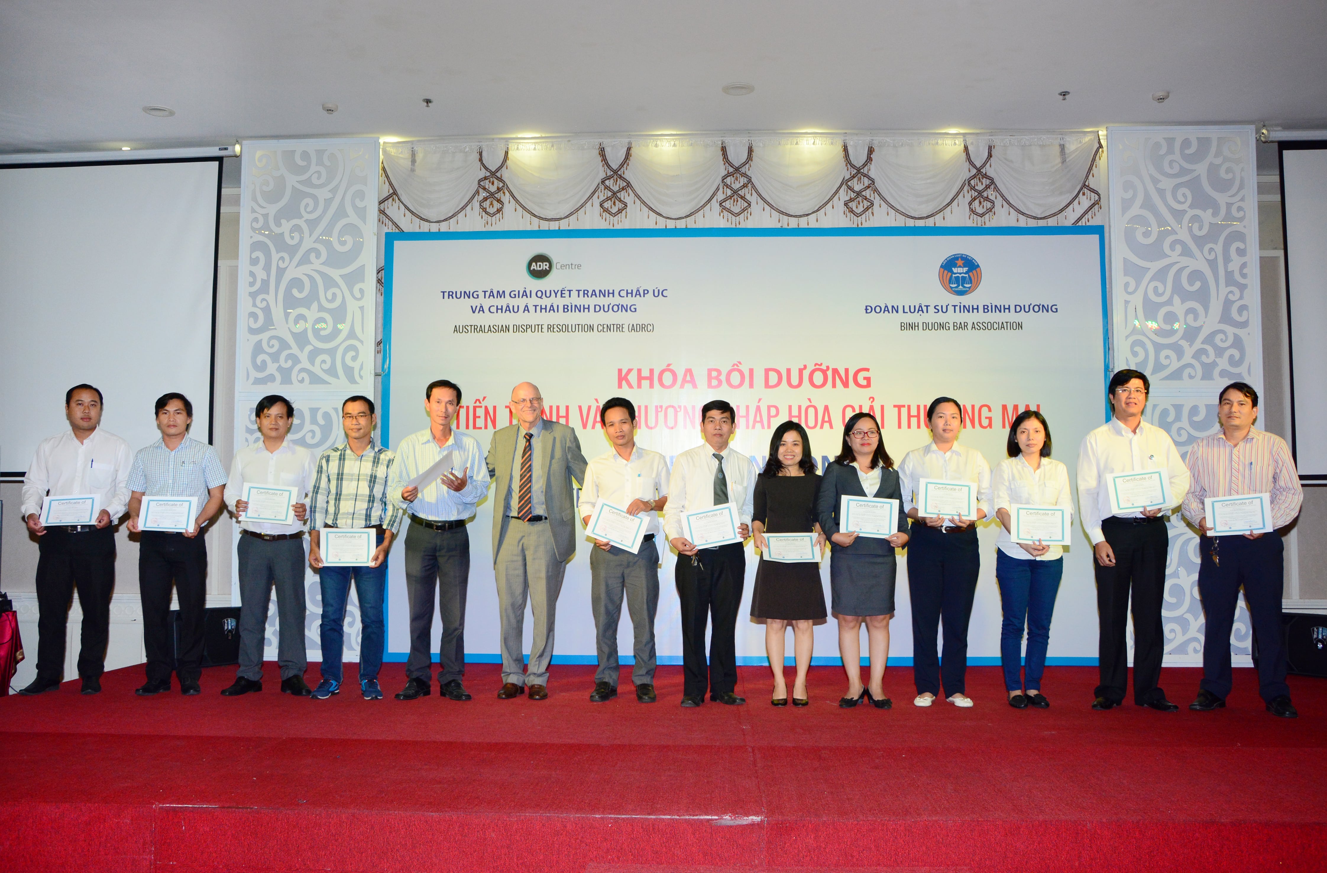On October 04 2016, under the international cooperation program between Vietnam Bar Federation and Australia Dispute Resolution Center (ADRC), Binh Duong Bar Association and ADRC co-organized the training course on "Process and Procedure for Commercial Mediation".